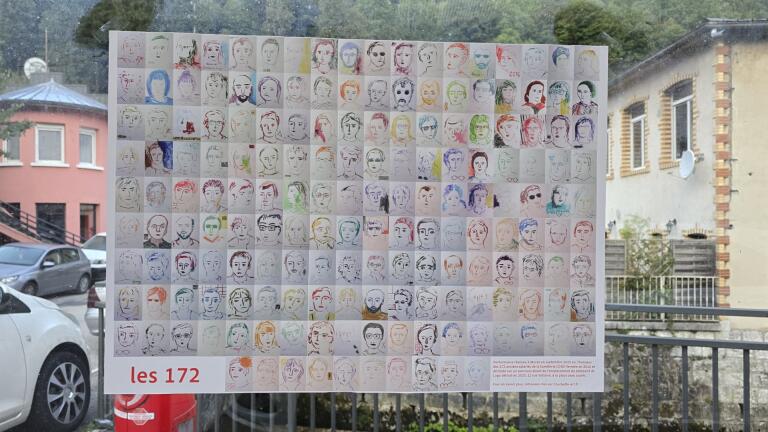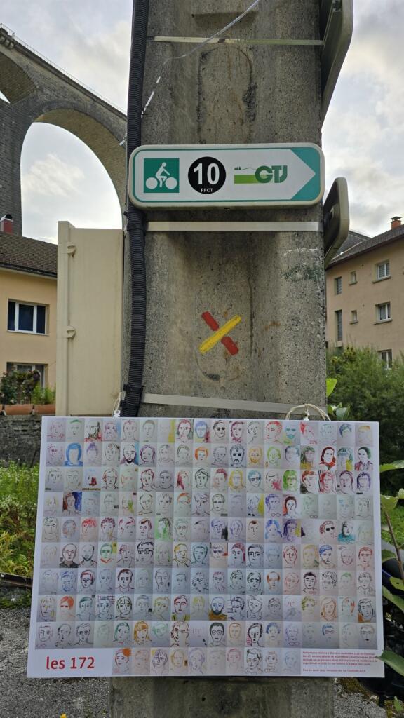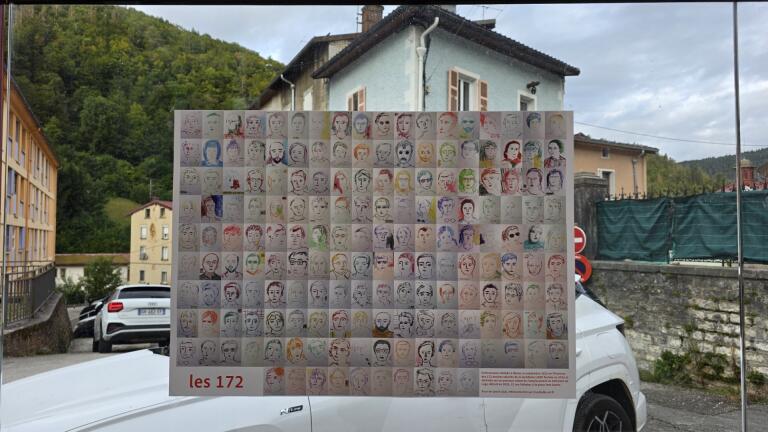 À partir du samedi 13 septembre, « Les 172 » regagnent Morez à travers un objet-affiche (50×70 cm) qui rassemble leurs visages souvent accompagnés d’un élément témoin du métier de la lunette ou de leurs luttes. 25 affiches ont été disposées, en leur honneur, sur un parcours allant de l’emplacement du bâtiment de Logo détruit en 2025, 12 rue Voltaire, à la place Jean Jaurès.